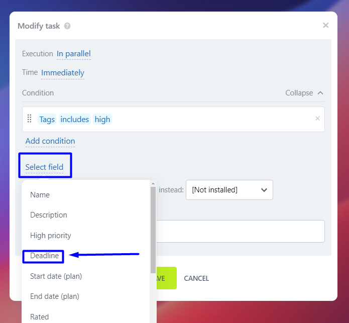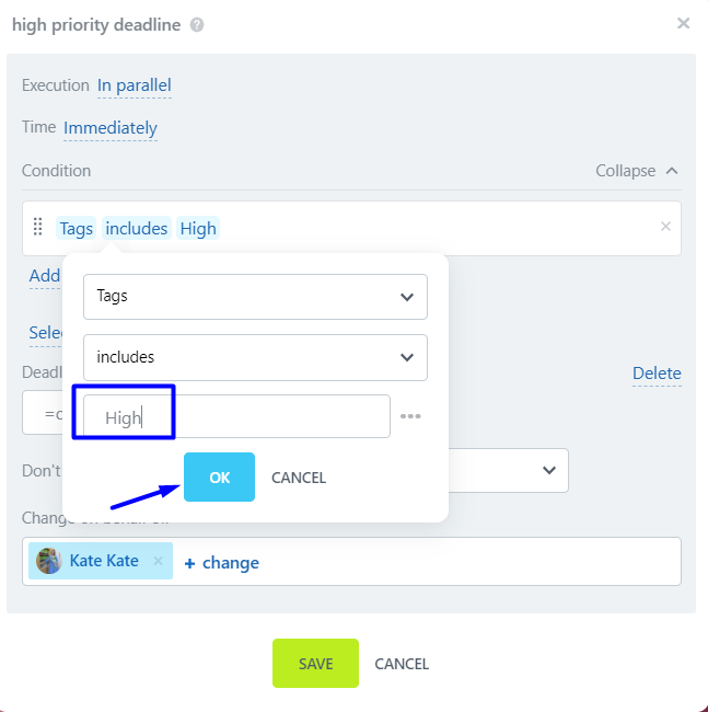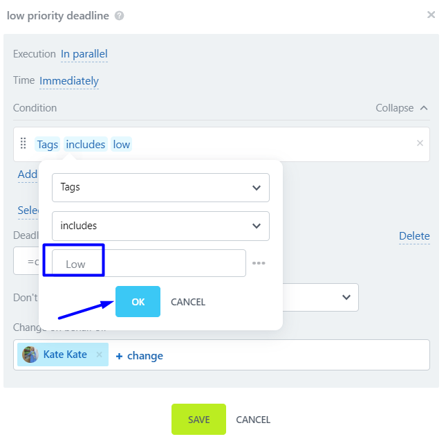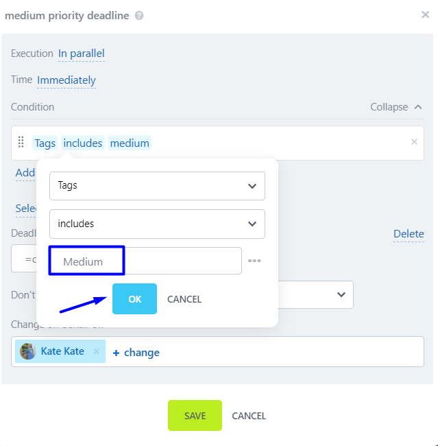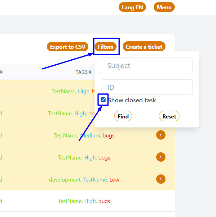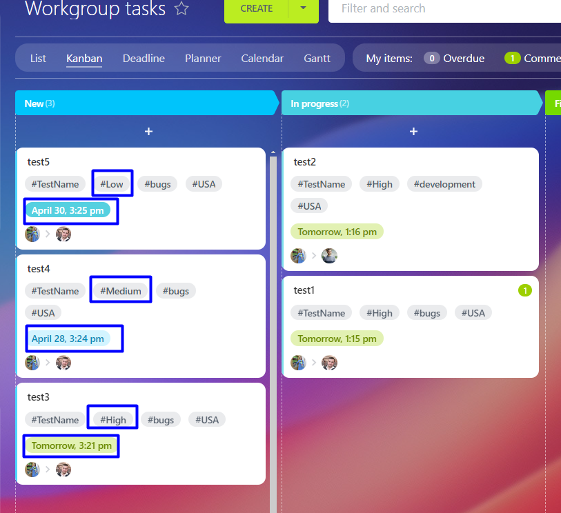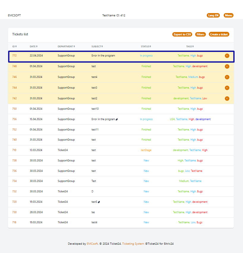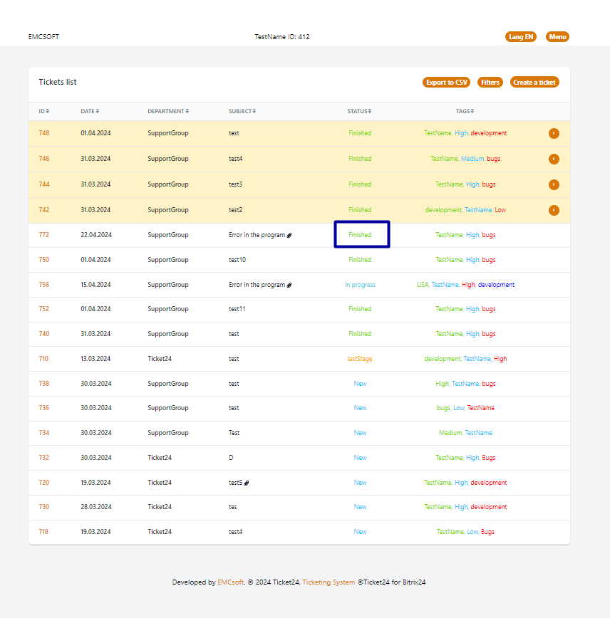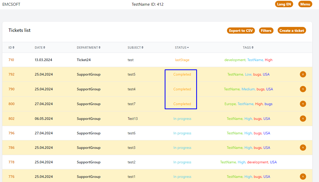 При помощи данных тэгов тикету назначается разный срок планируемого выполнения.