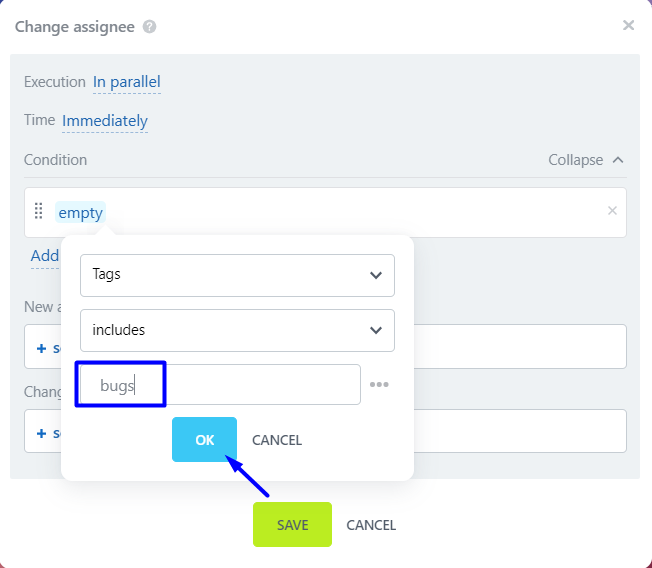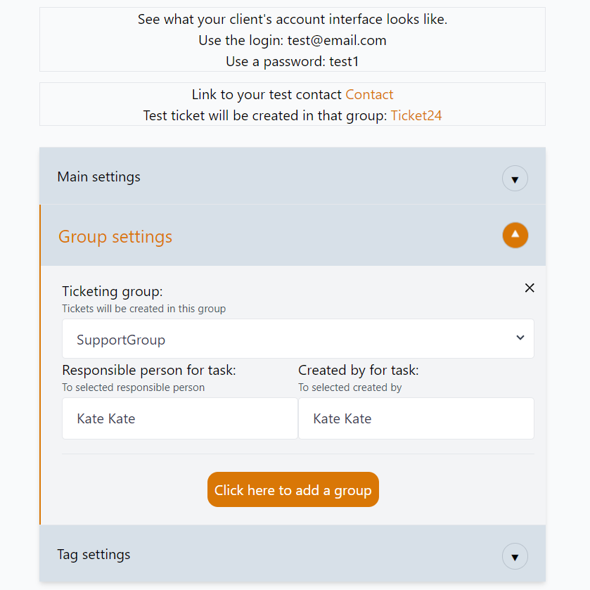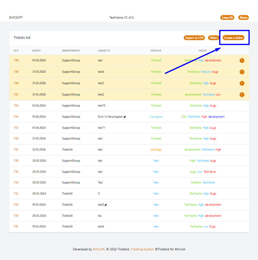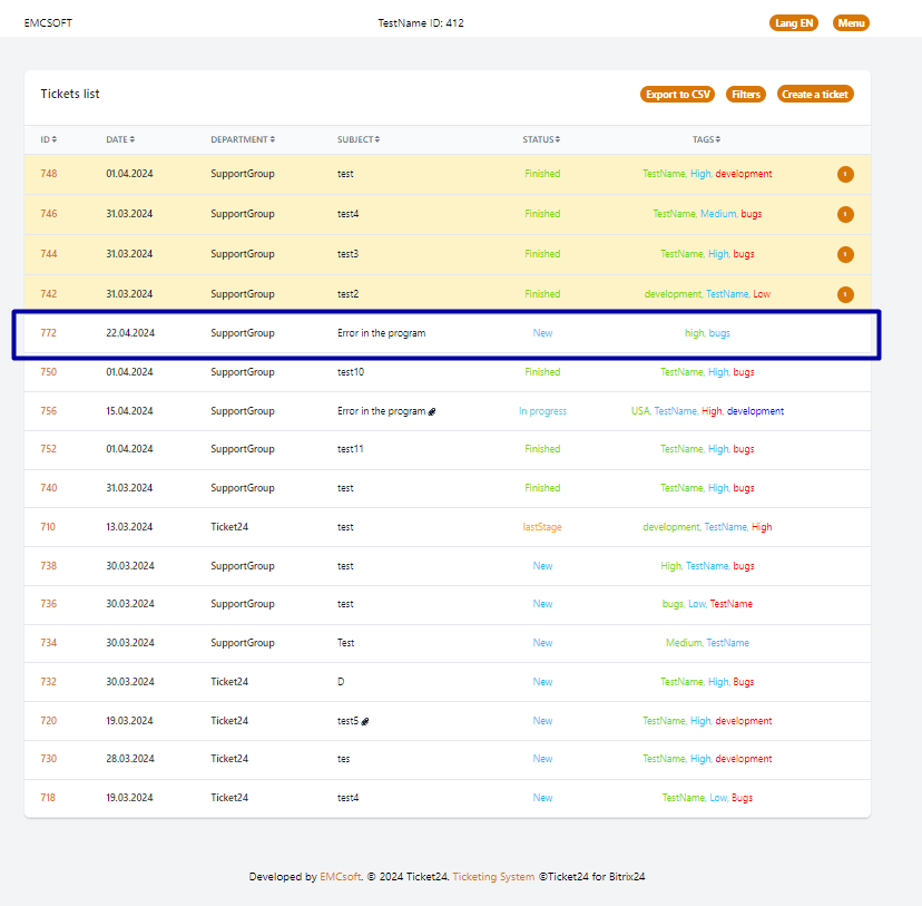 При помощи данных тэгов определяется ответственное лицо, в работу которому поступит тикет.