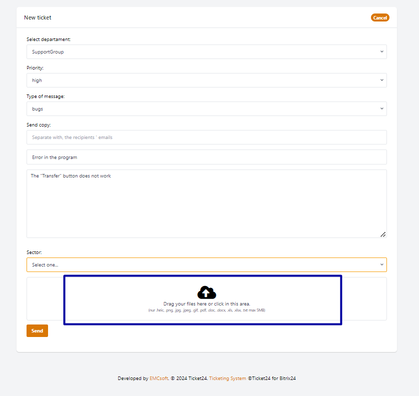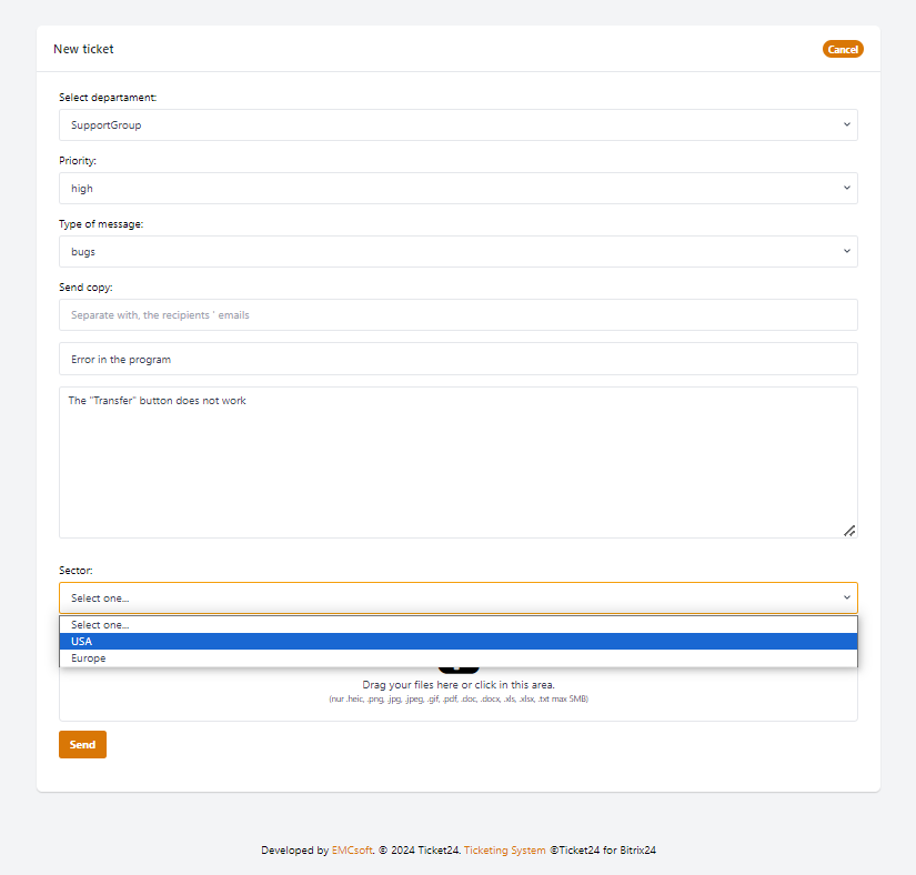 Сектор может относиться к региону. К примеру, ведётся деятельность в USA, Europe и тд. Клиент выбирает в тикете США, если он из США.